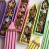 Wyjątkowy zestaw upominkowy w kolorowych, drewnianych pudełkach w kształcie ołówka ✏️ to idealny prezent nie tylko dla nauczycieli, ale również dla każdego, kto ceni oryginalność i słodkie niespodzianki. Każde pudełko wypełnione jest smakołykami, takimi jak orzechy, suszone owoce, czekoladki 🍫, ciasteczka i mini buteleczki likieru lub miodu 🥃. Zawartość na zdjęciu jest jedynie przykładowa – każde pudełko ma unikalną zawartość! Oznacza to, że każdy zestaw jest niepowtarzalny, co sprawia, że Twój prezent będzie naprawdę wyjątkowy.