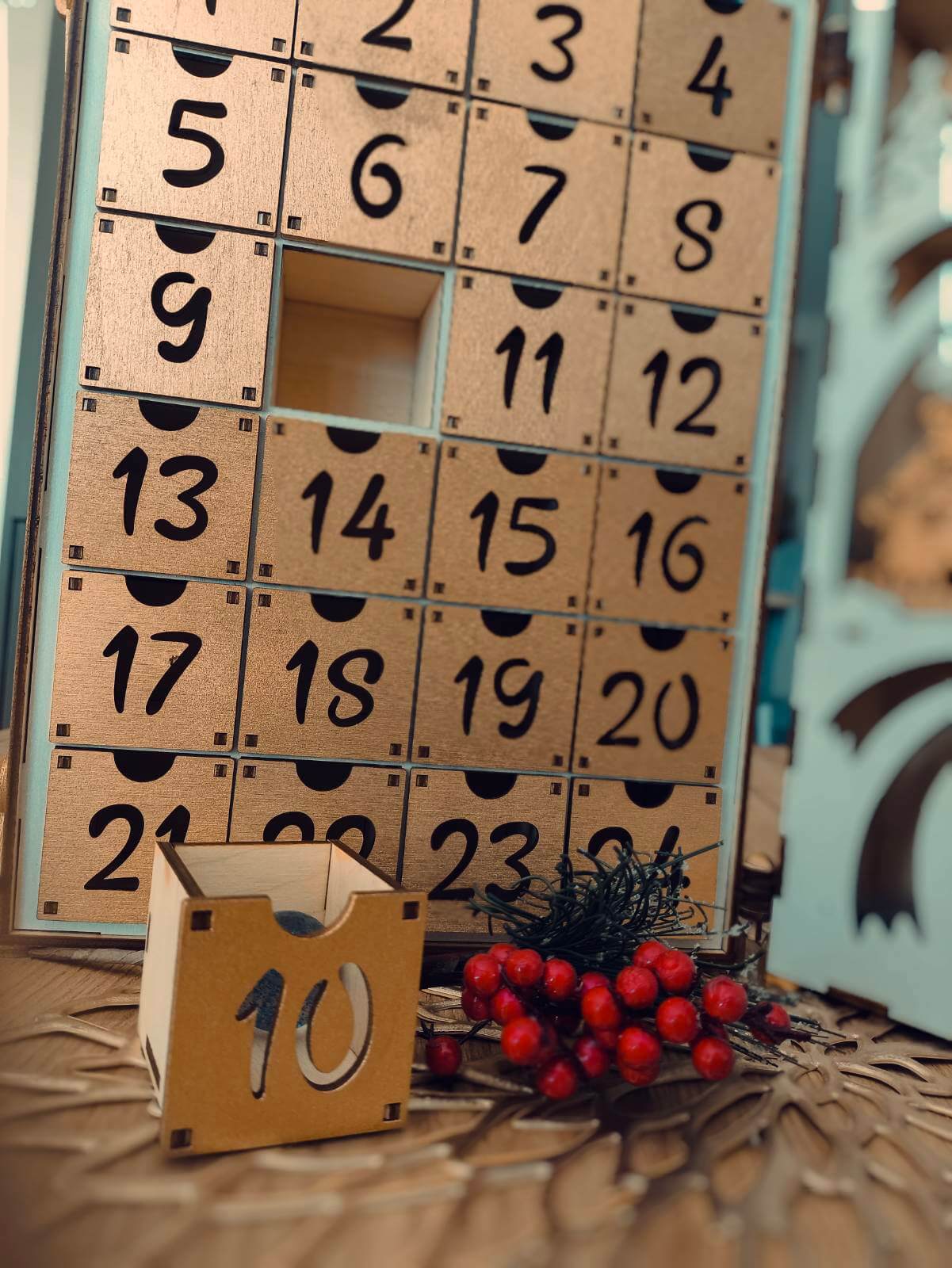 - 24 Szufladki na Codzienne Niespodzianki: Każda z ponumerowanych szufladek pomieści drobną niespodziankę – słodycz, małą zabawkę lub świąteczne przesłanie. To doskonały sposób na budowanie świątecznego nastroju wśród domowników i codzienne cieszenie się małymi chwilami radości.