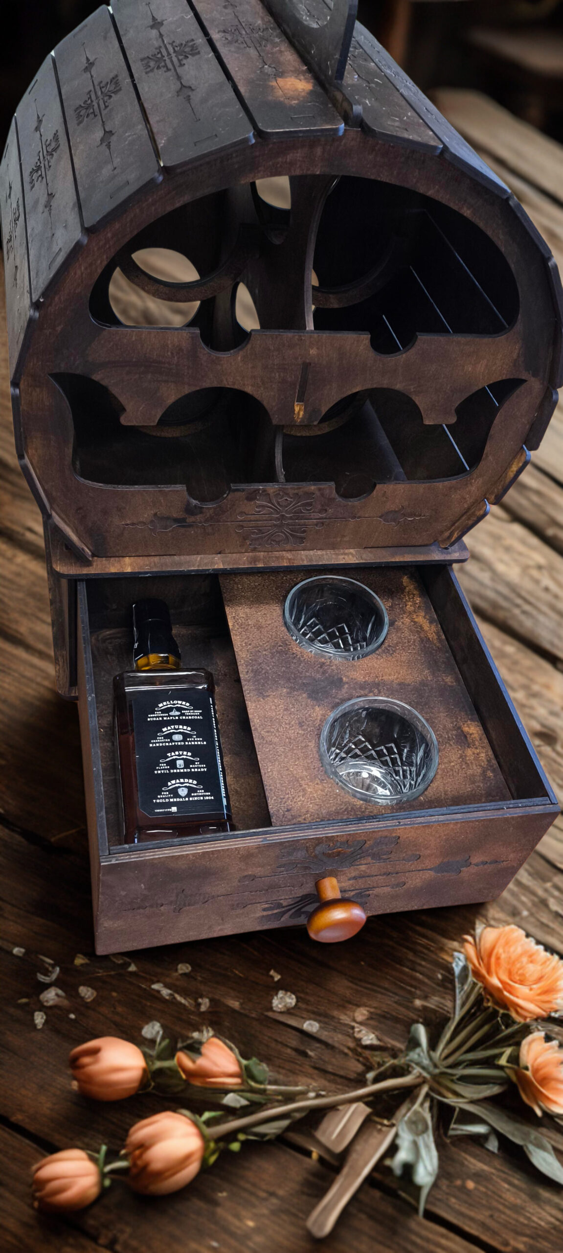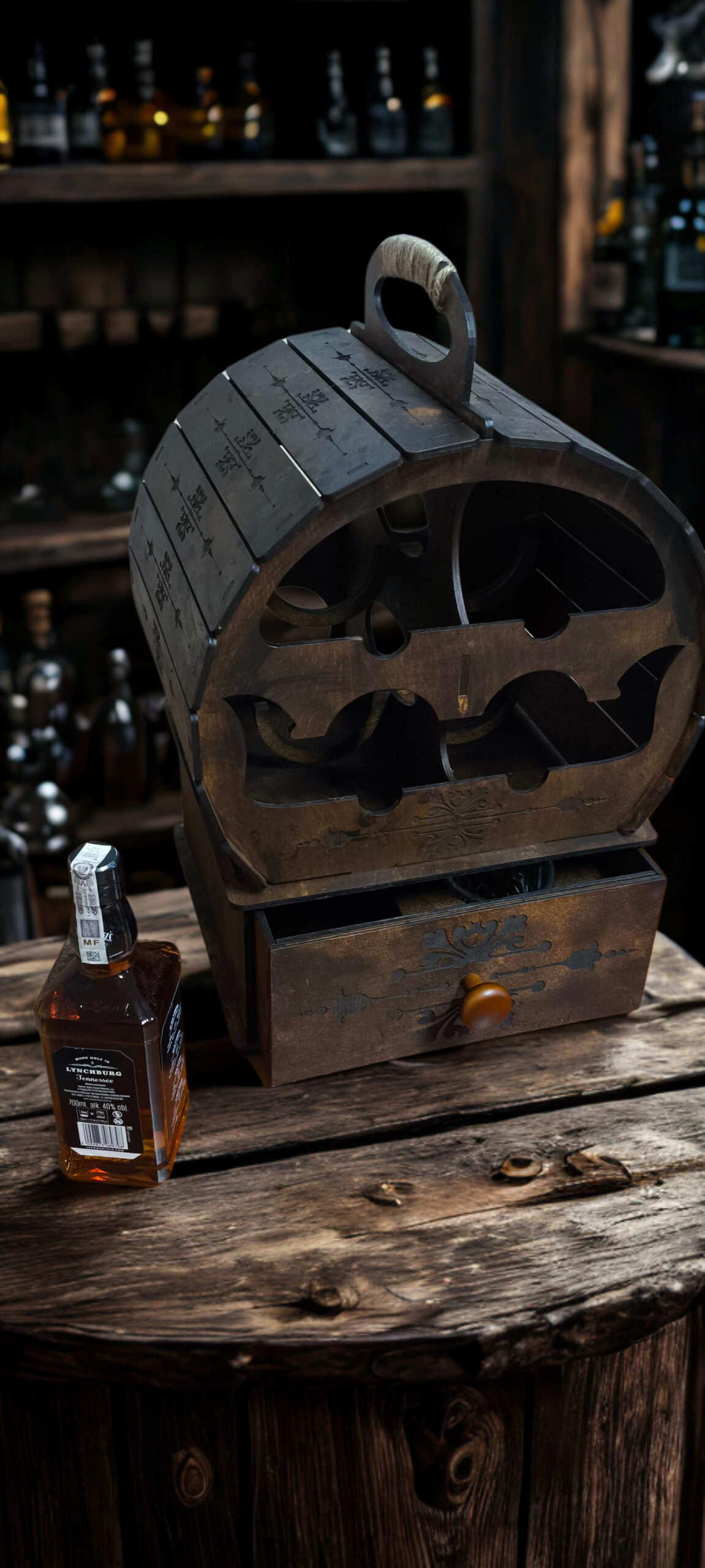 ✅ Elegancka beczka na alkohol z przegrodami o wyjątkowym designie