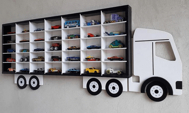 Ta półka w kształcie ciężarówki, wykonana ze sklejki, to praktyczne rozwiązanie i jednocześnie stylowy dodatek do pokoju każdego miłośnika resoraków. 🚚 Zadbaj o porządek w kolekcji i dodaj odrobinę motoryzacyjnego ducha do swojego wnętrza!